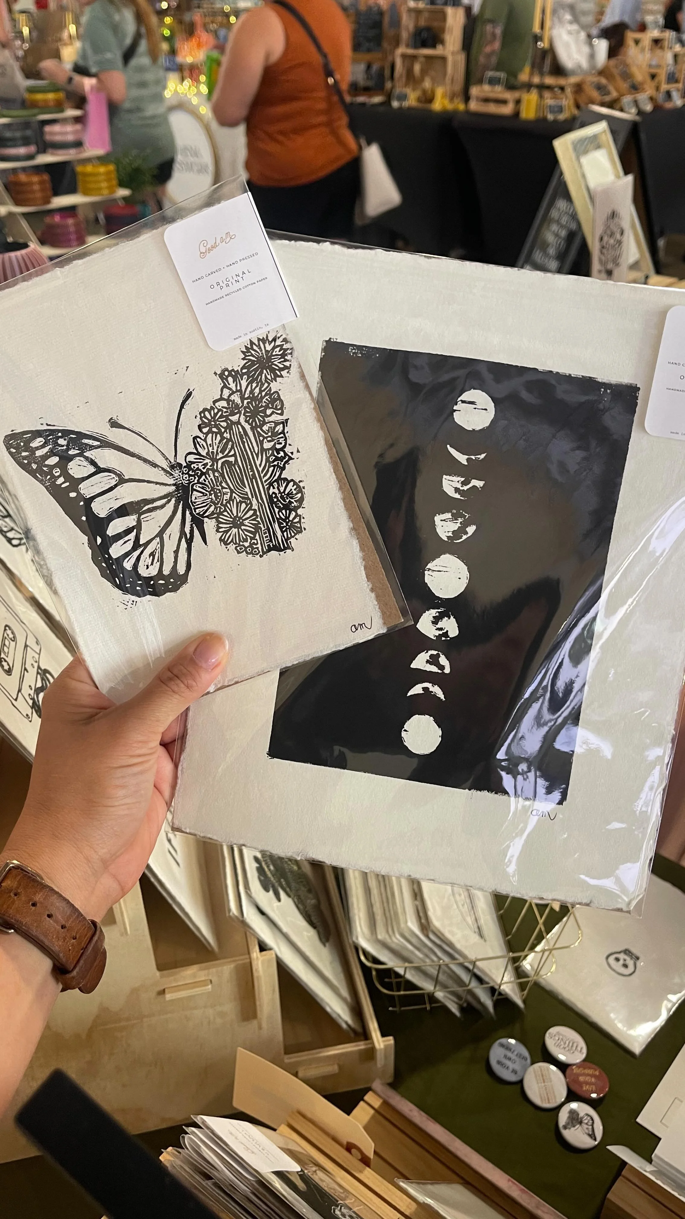 Her block prints are a reflection of her passion for combining artistry with grit. Each piece is hand-carved and printed on handmade recycled cotton paper, where Annabelle embraces the beauty in the imperfection, textured nature of the medium. Her prints evoke feeling and inspire authenticity, often featuring uplifting themes with a touch of playfulness.